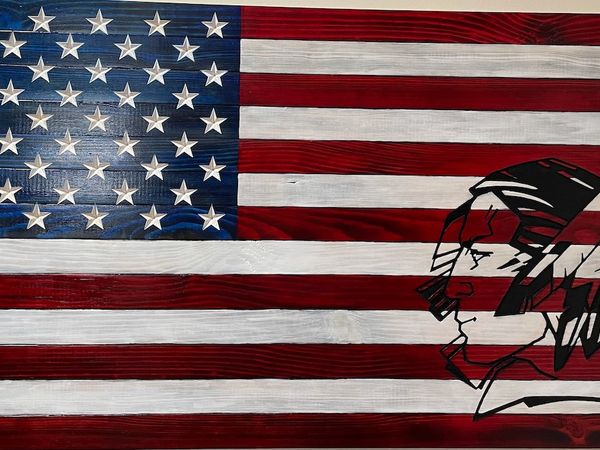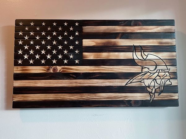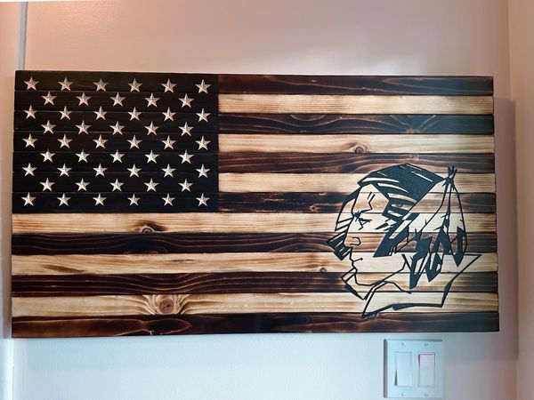 All flags are hand crafted out of pine. Other custom sizes or *designs can be done on request.