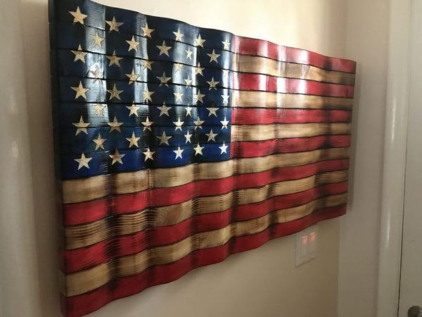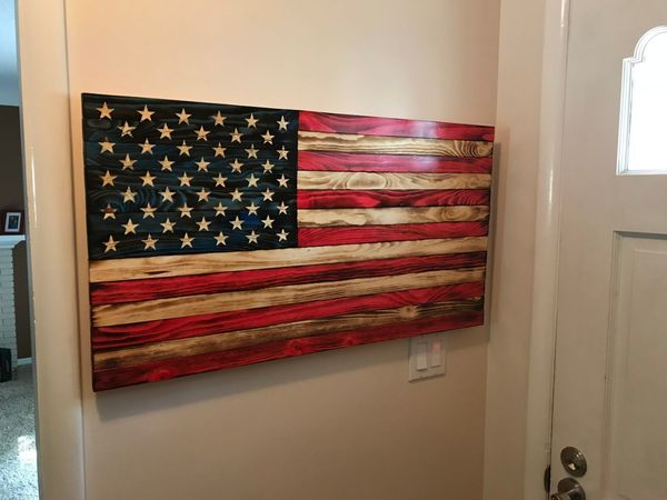 All flags are hand crafted out of pine. Other custom sizes or designs can be done on request.